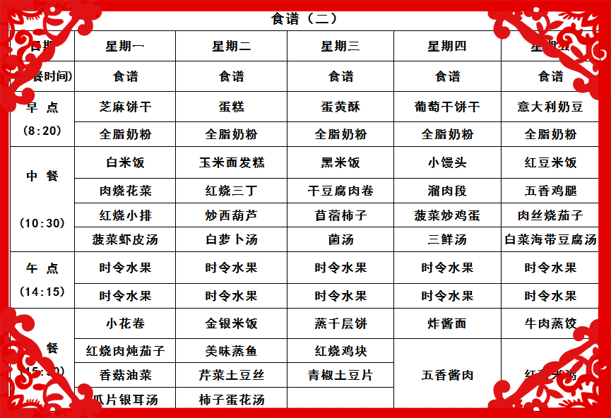 黑大幼儿园食谱二