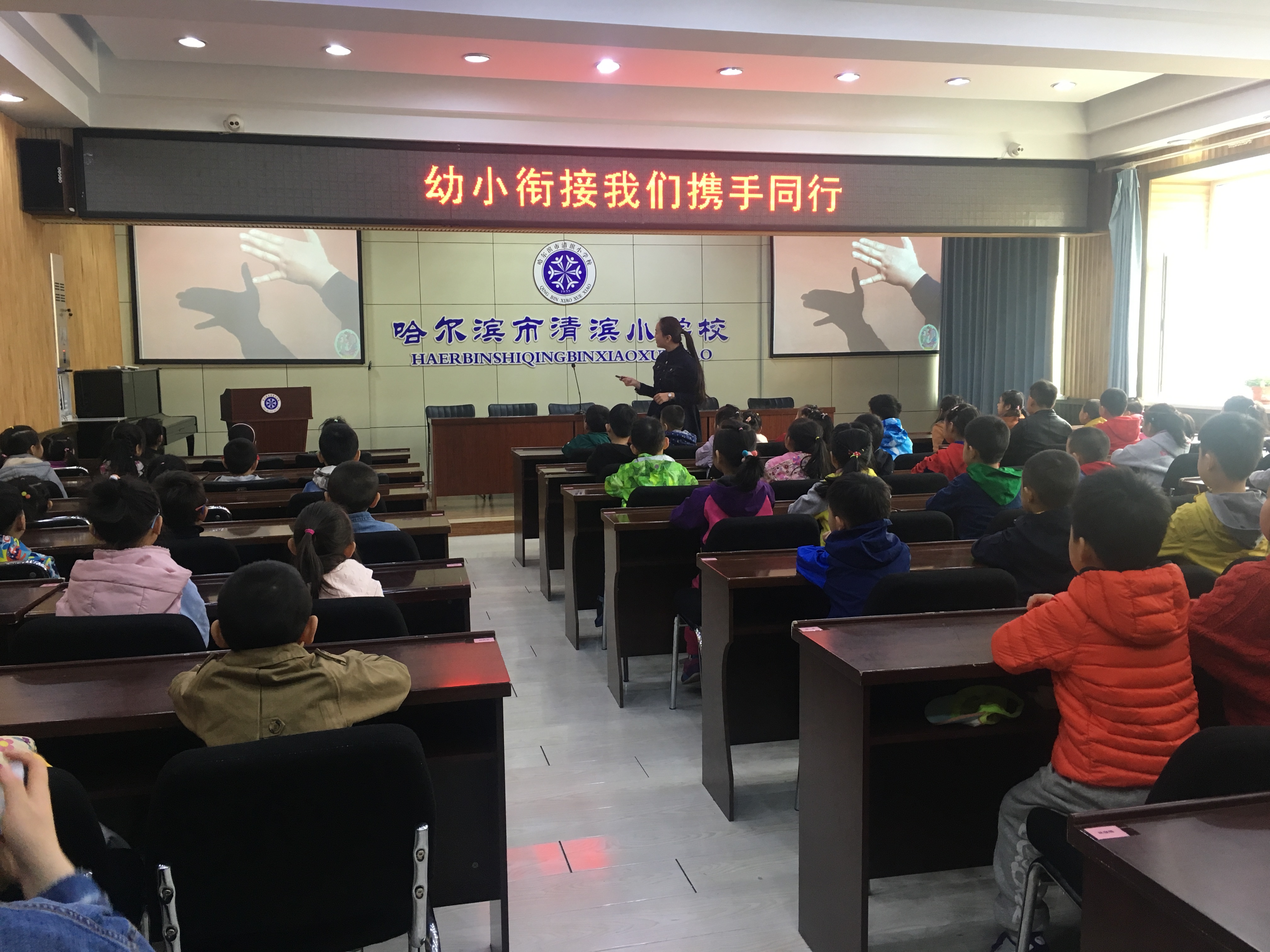 为了让大班的幼儿更好的了解小学的生活和环境,科学地开展幼小衔接工作。2018年4月23日,黑大幼儿园大班小朋友及家长来到哈尔滨市清滨小学校参观,参加此次活动家长和幼儿共计160余人。