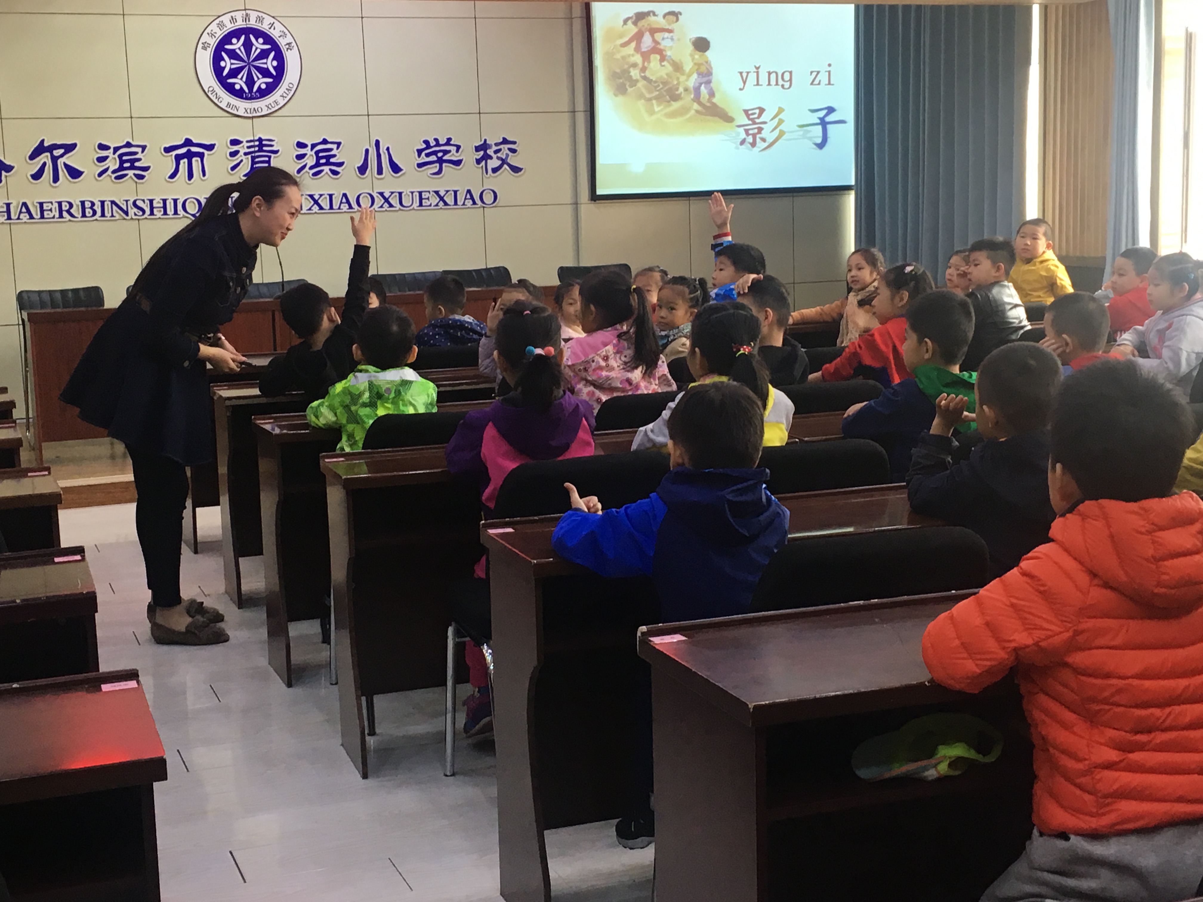 接下来小朋友们到四楼会议室和高老师共同上了一节语文课《影子》,课上孩子们积极的态度,自信大胆的和老师互动,为融入小学课堂奠定了基础。